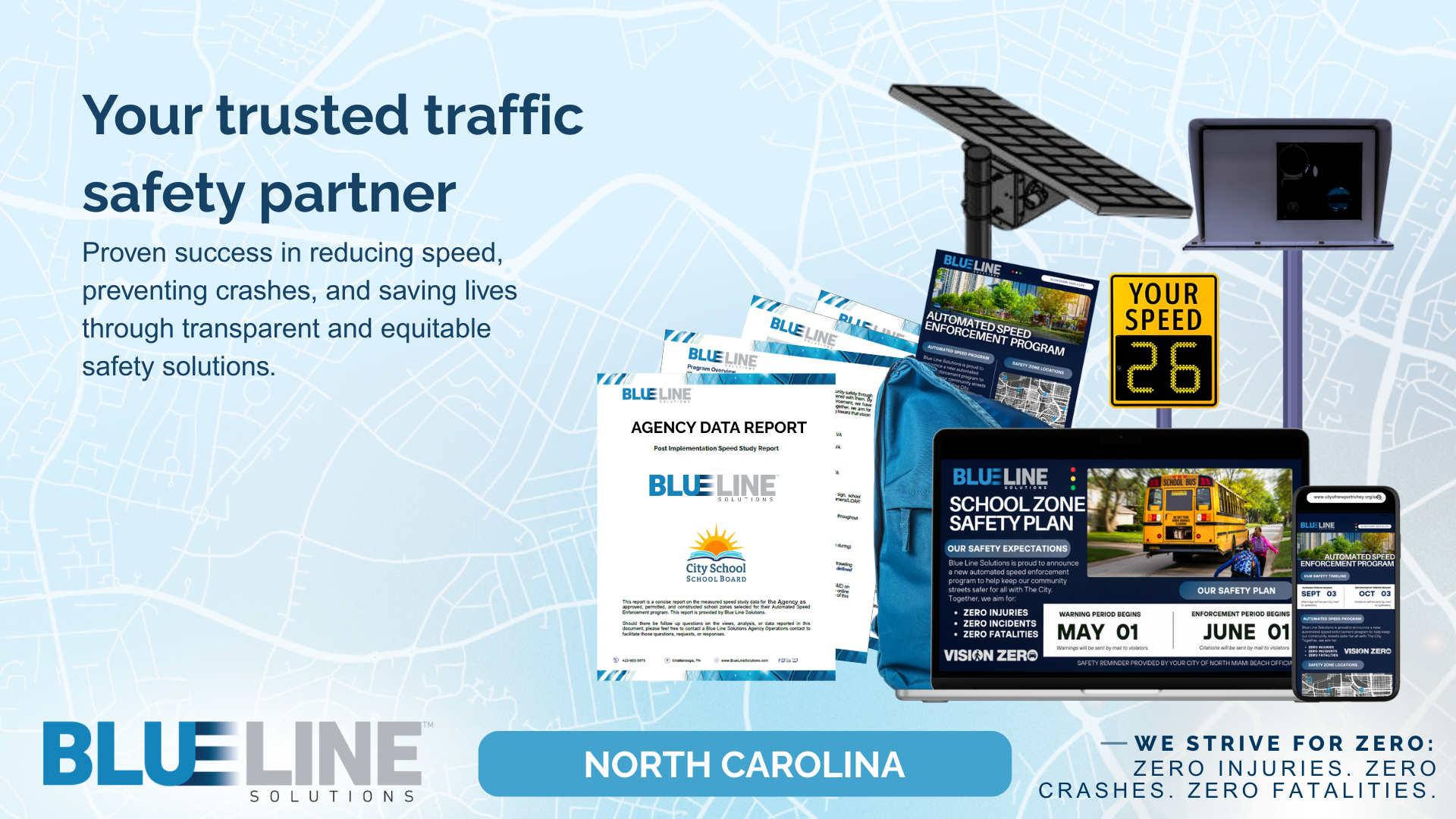 With a proven track record of traffic safety success, Blue Line Solutions is the traffic safety partner North Carolina needs to help protect their school zone children, pedestrians, cyclists, and vehicle drivers across the Tar Heel State.